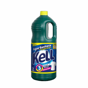 • Para desinfecção de superfícies (banheiros, cozinhas, pisos): Dilua 2 colheres de sopa (aprox. 20ml) de Água Sanitária Kell em 1 litro de água. Aplique sobre a superfície, deixe agir por 10 minutos e enxágue.
